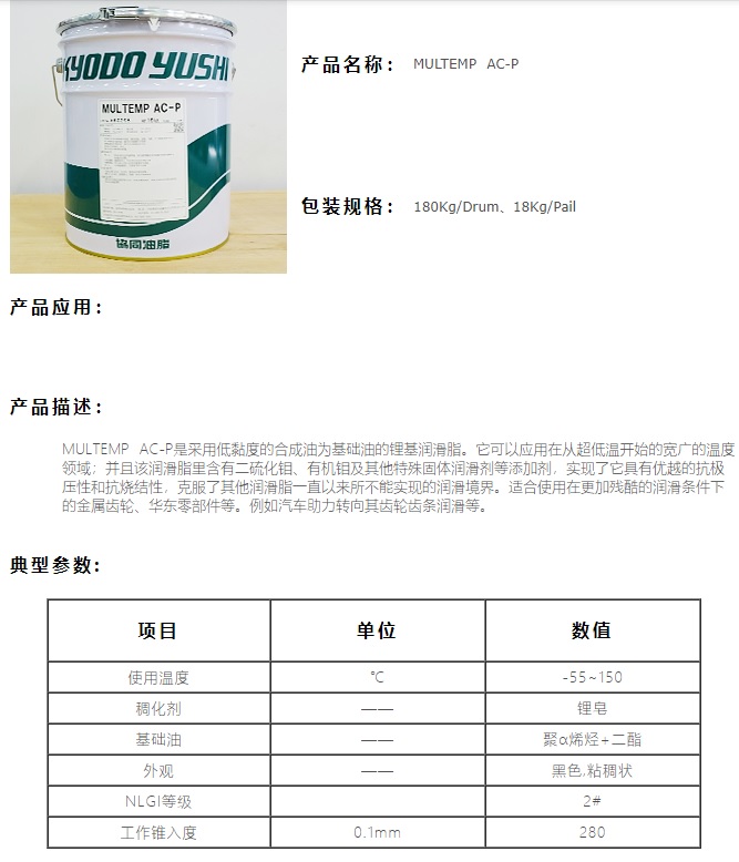 MULTEMP AC-P合成极压锂基润滑脂含二硫化钼固体润滑剂