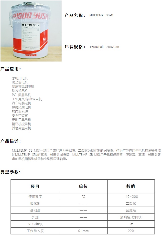 关键指标 SB-M数据 普通润滑脂对比 测试标准
